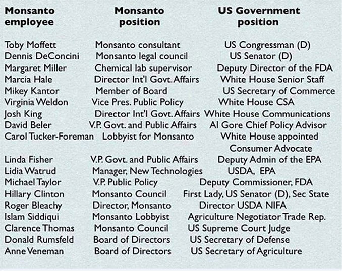 Here we have illustrated the close and unhealthy relationship between Monsanto and the US Government. Here is why their GE food products and associated Roundup are so widespread.