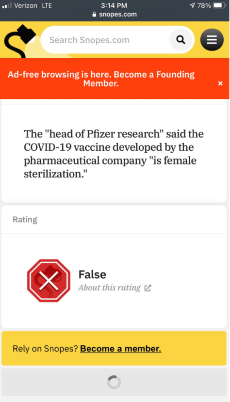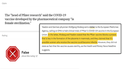From Snopes, “Did ‘Head of Pfizer Research’ Say COVID-19 Vaccine ‘Is Female Sterilization’?” as highlighted by DrunkWoodworker on Twitter: