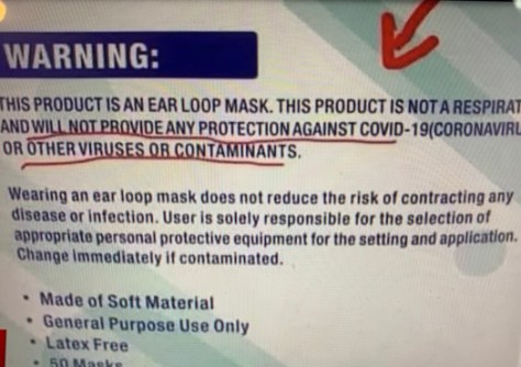 Most People Can Read Right? So Explain How They Miss This Warning On The Standard Box That Most Of the Masks Come In? Are Most People To Lasy Or Lame To Look. Mainstream Media Originally Would Hold Governments Feet To The Fire To Make them Accountable To The People. How Bloody Clever Does A Journalist Have To be To See This Warning Label. But I Guess We All Know That They Just Don’t Give A Damn, And Have Gone over To The Dark Side As An Ally And Mouthpiece For The Globalist Satanic Cabal.