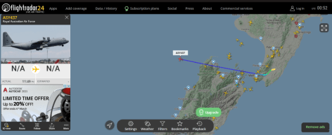Just asked why Hercules flew from Sydney flew over Masterton and Carterton and then flew back to Australia after landing today (foreign military personnel have an exemption from quarantine).
