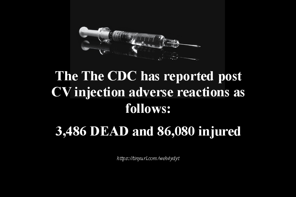 Here in the U.S., as of this week, the CDC is stating that they have received 3,486 reports of people dying following the experimental COVID injections.