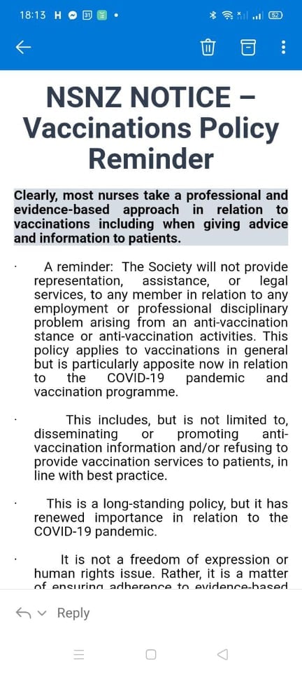 I personally have been told by several NZ folk that the vaccine has been offered more than once in their workplaces. One workplace is even offering to set up the appointment for the jab. One woman said she resigned when given the ultimatum. Others have signaled they will if it is mandatory and others have caved, submitted and taken the jab.