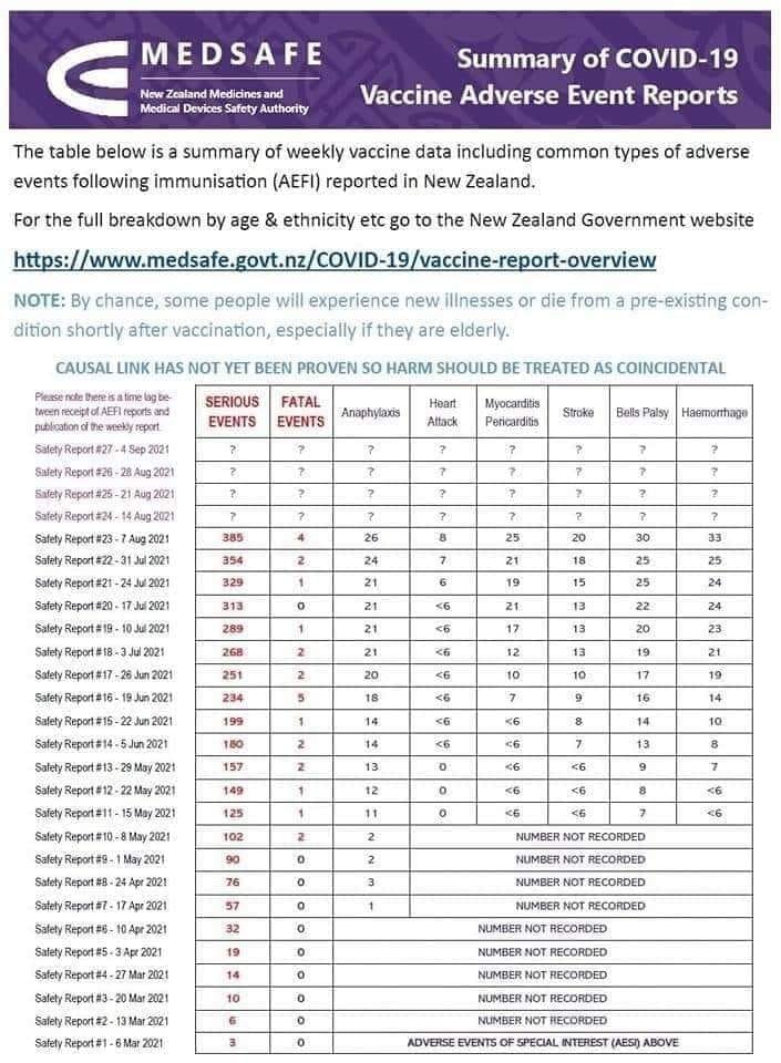 So let me just get this straight. The virus has killed zero people (at the time of writing), but the cure has potentially killed 26 Kiwis and hurt more than 9,000. Meanwhile the entire country also continues to be completely devastated by the delta lockdown, border closure, and other COVID measures. It is utterly insane by any measure.