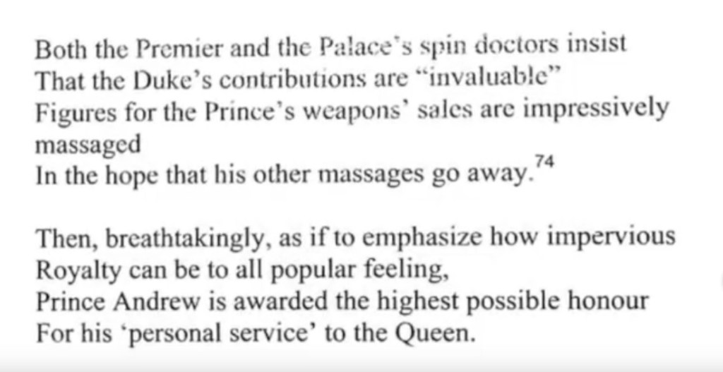 On topic, years ago I purchased and read the late Joan Veon’s book called ‘Charles, the Sustainable Prince’ (discussed in this post). Written in 1997, she raises some interesting observations. Well worth the read. She discusses her belief that when the U.S. Senate signed the U.N. Charter in 1945, that is when American officially entered world government and reverted back under British rule. This book documents the role of the British royal family as a formidable power working BEHIND the scenes of the UN and the role of Prince Charles with that of sustainable development and public-private partnerships. The partnerships are, she says, an arm of the world’s growing corporatocracy and their bottom line is to take control of the assets of Government. We’ve seen enough of that in recent years. But then the role of the globalists is to do away with national sovereignty. And private property. (For a wider picture see Barry Smith’s three End Times videos on this page).