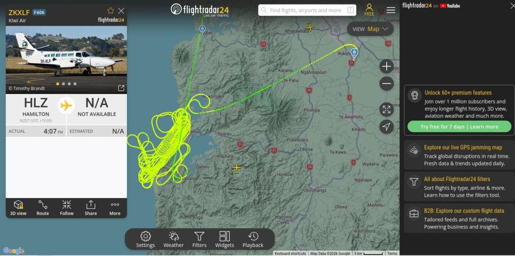 Following on from our last post on topic (please read the info there), below are tracked flight paths seen prior to the recent flooding in the Waikato region. A state of emergency was declared at Otorohanga on the 14th. This post records activity on and around the 12th February 2026. Similar seen over Auckland on the 10th. EWNZ