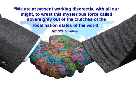 “We are at present working discreetly, with all our might, to wrest this mysterious force called sovereignty out of the clutches of the local nation states of the world. And all the time we are denying with our lips what we are doing with our hands.” Arnold Toynbee – International Affairs, p.809, November 1931