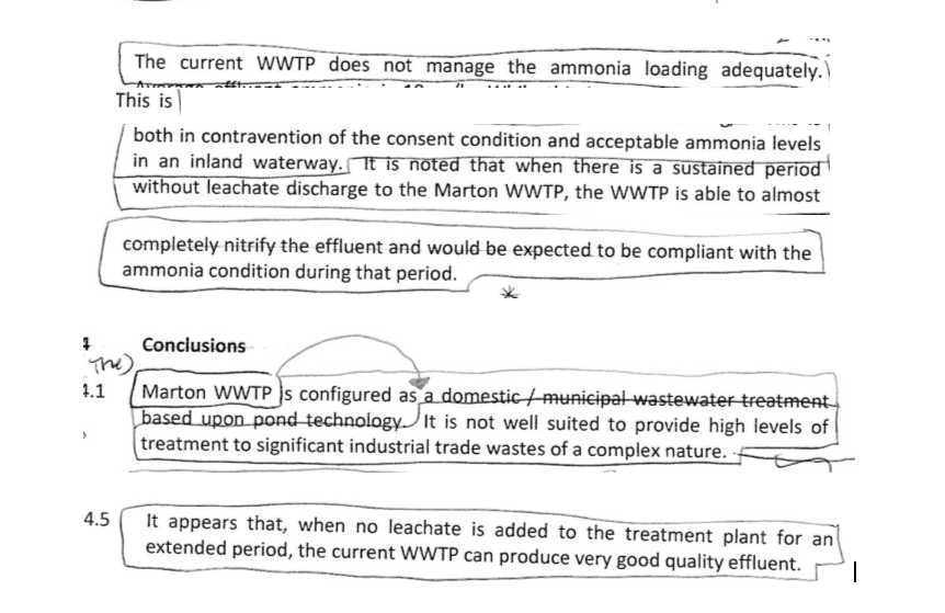 According to Council’s own report, the leachate and the ongoing non-compliance of the treatment plant are intimately connected. Is this what Andy meant by ‘legitimate’?