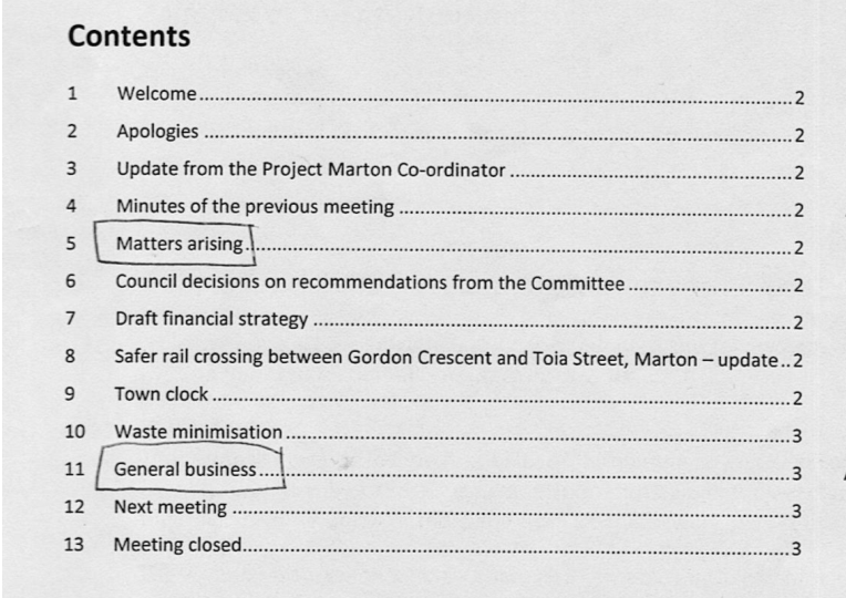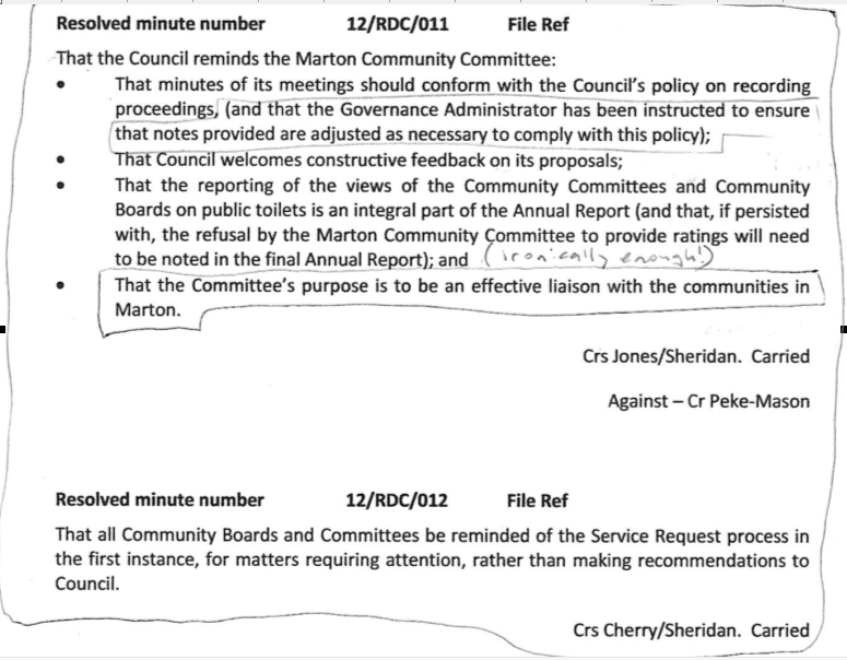 NOTE: Please feel free to comment, or contact me to comment via the contact page. To follow up on these issues it remains for the public to approach the RDC which is possible through the Marton Community Committee which meets monthly on a Wednesday (details and dates on the RDC website). With enough persistence by enough people change must surely come about.