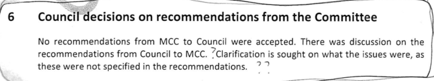 Our next meeting was held in February the following year, five days after Council met to discuss our ‘recommendations’, amongst other things. These other things that I’m referring to are the