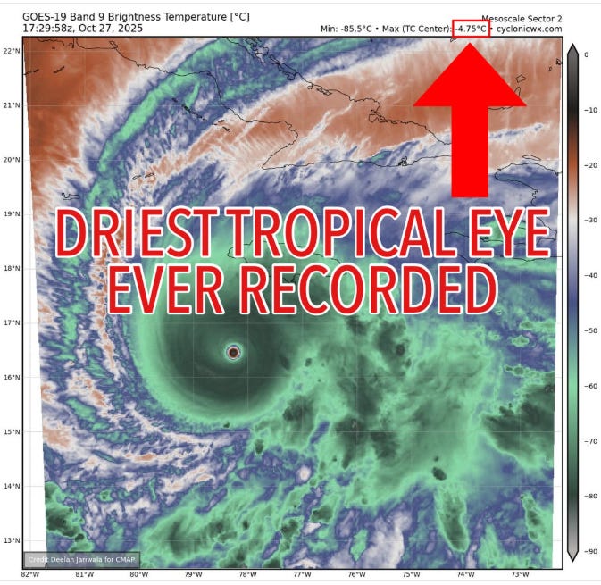 Now we see that Melissa has mysteriously produced the “driest tropical eye ever recorded”.