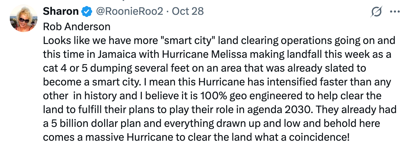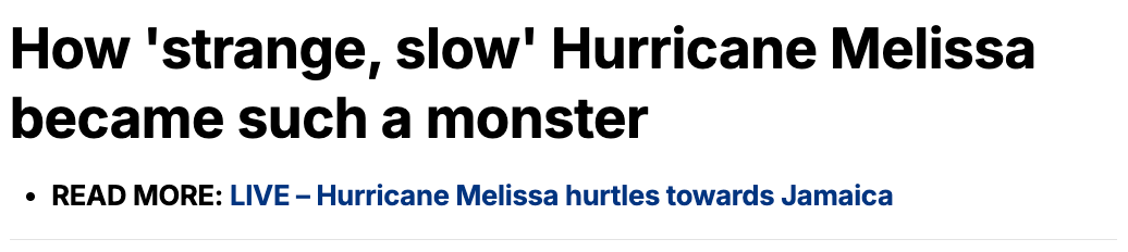 As for “WHY NOW?”, it ought to be obvious to everyone at this late date that whenever these NWO geoterrorists fabricate such a captivating weather drama like Melissa, there is a great need for the globalist cabal to distract US from something very BIG that’s going on under the radar. Incidentally, the following UPDATE #1 is not that “something”.