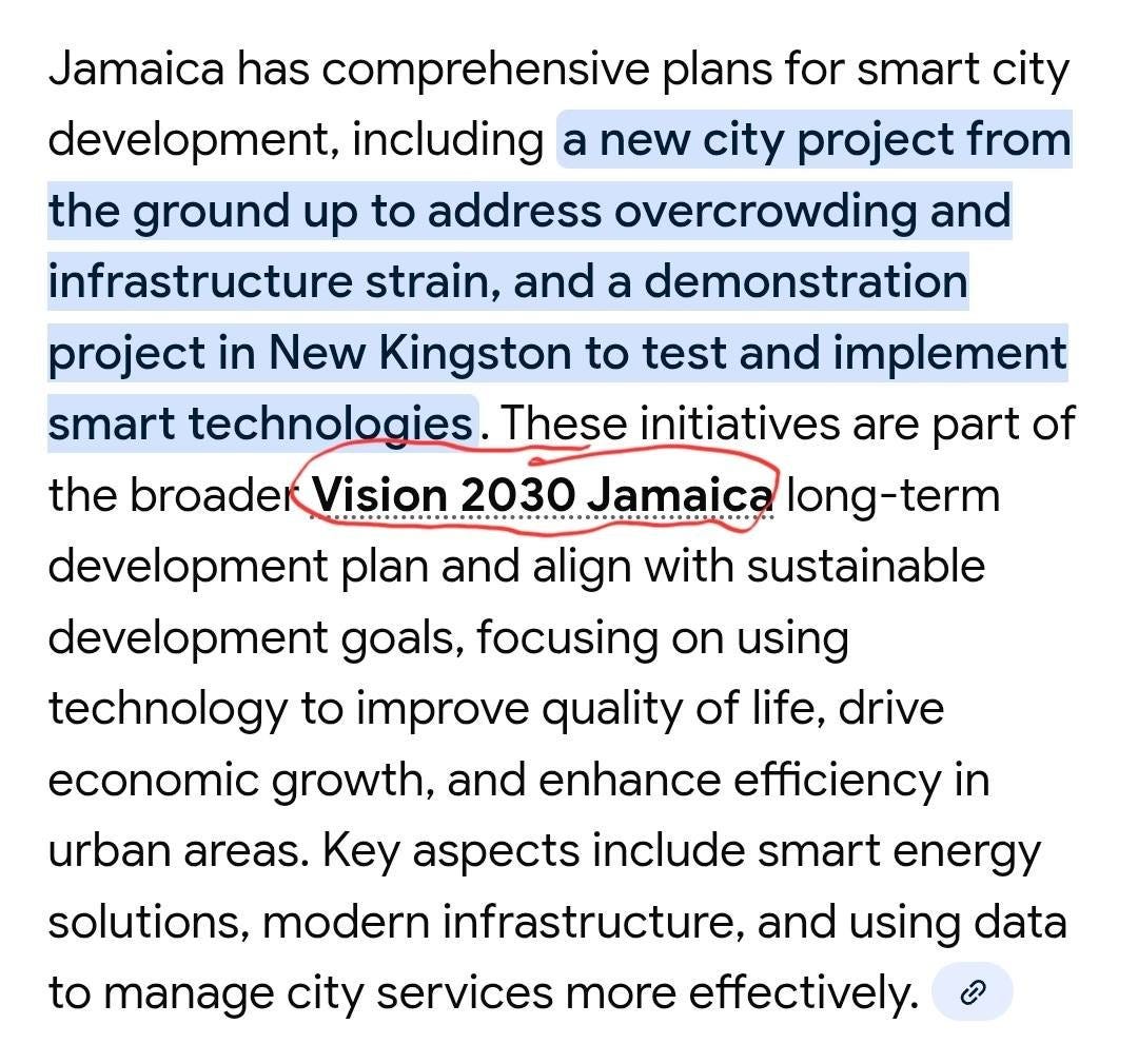 Jamaica is moving toward becoming a UN-backed smart city under its Vision 2030 development plan, a long-term blueprint running from 2009 to 2030 that aims to make the island “the place of choice to live, work, raise families, and do business.”
