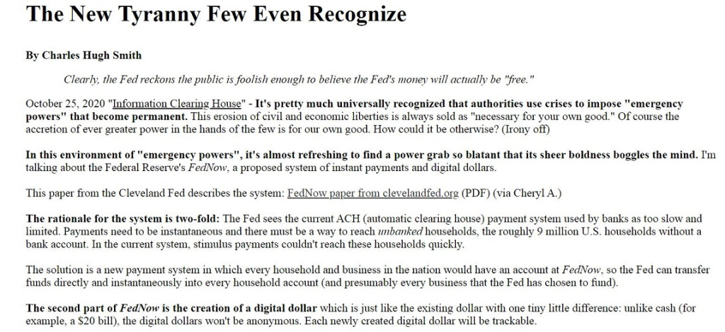 The envisioned monetary order will be, like the whole coronavirus and climate change scams, just another means by which the Davos Crowd will rule the world. At least that’s how the Davos Crowd imagines things. From Stefan Gleason at activistpost.com: