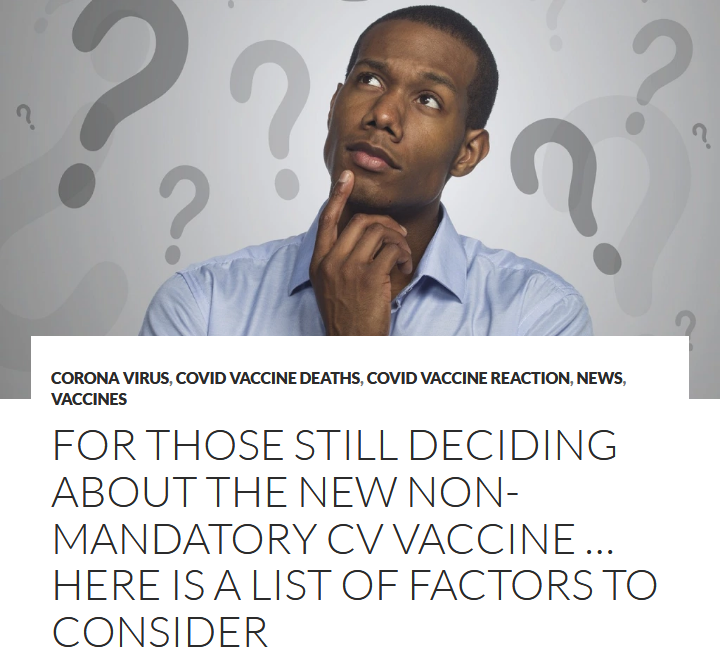 Screenshot_2021-02-20 For those still deciding about the new non-mandatory CV vaccine … here is a list of factors to consider February 20, 2021 720 × 655 Screenshot_2021-02-20 For those still deciding about the new non-mandatory CV vaccine … here is a list of factors to consider Discover more from Environmental Health Watch NZ Subscribe to get the latest posts sent to your email. Type your email… Subscribe Share this: Share on Facebook (Opens in new window) Facebook Share on X (Opens in new window) X Print (Opens in new window) Print Email a link to a friend (Opens in new window) Email Share on Reddit (Opens in new window) Reddit Share on Tumblr (Opens in new window) Tumblr Share on Pinterest (Opens in new window) Pinterest Share on Telegram (Opens in new window) Telegram Like Loading...