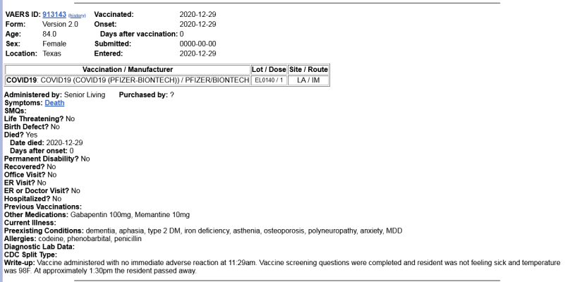 screenshot_2021-03-26-search-results-from-the-vaers-database March 26, 2021 1283 × 635 screenshot_2021-03-26-search-results-from-the-vaers-database Discover more from Environmental Health Watch NZ Subscribe to get the latest posts sent to your email. Type your email… Subscribe Share this: Share on Facebook (Opens in new window) Facebook Share on X (Opens in new window) X Print (Opens in new window) Print Email a link to a friend (Opens in new window) Email Share on Reddit (Opens in new window) Reddit Share on Tumblr (Opens in new window) Tumblr Share on Pinterest (Opens in new window) Pinterest Share on Telegram (Opens in new window) Telegram Like Loading...